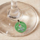 This wine charm (single or a set) is green with faux gold sparkles and a happy skeleton holding ornaments up to his eyes with a Santa hat on his head. Two gold stars are on each side of him. Customise the Merry Christmas text with the template.