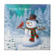 Happy Christmas Snowman & Birds Winter Scene Ceramic Tile