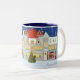 Happy Christmas winter, snowman and beautiful houses Mug. Text can be personalized.