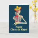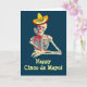 Happy cinco de mayo smiling skeleton with his bony hand resting on his chin.