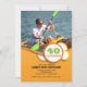 A trendy photo invitation with a weave background, in burnt orange, and festive circles. Perfect for any age or gender.