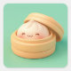 This delightful sticker features a cheerful, ultra-round steamed dumpling nestled inside a traditional bamboo steamer basket. Rendered in a smooth, matte clay aesthetic, the character pops with a warm cream tone, accented by tiny blushing cheeks and a sweet, smiling expression. The minimalist 3D design is set against a vibrant mint green background, with gentle studio lighting highlighting the soft curves of the dumpling and the textured lid of the steamer. The overall palette is clean and modern, evoking a cozy and joyful culinary vibe. This adorable decal is a versatile way to add a bit of joy to your everyday items. Adhere it to your laptop lid for a daily mood boost, seal a special envelope with a touch of whimsy, or customize your favorite water bottle. It also makes a sweet addition to any planner or journal spread focused on cozy vibes and cute food characters.