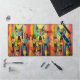 A colorful design desk mat featuring an abstract cat family. Nice for a cat lover and for kids.