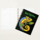 This planner is black with vibrant green dots and a happy colorful lizard in colors of blue, green, orange, and yellow with big eyes holding a leaf on a branch. Customize your text with the template.