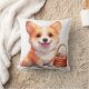 Happy corgi with a picnic basket throw pillow