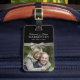 This is a beautiful luggage tag for the happily married couple on their way for a second honeymoon perhaps. Elegant script and block letter outlined text on black, with a pretty faux silver glitter ribbon graphic divider tied into a dainty little bow. Perfect for classy couples or especially those celebrating a 25th wedding anniversary. Sample photo is for illustration purposes only. Upload your own favorite photo and resize or reposition as required, adjusting the ribbon also if necessary by clicking the handy customize button. If you need help, feel free to contact me through the store. Personalize the reverse side with your contact information or just delete them to leave blank.