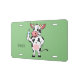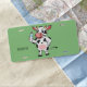 This happy cow is holding a babies bottle. Drawn in fun cartoon style.