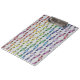 Clipboard with a cute and colorful pattern of happy little crayons holding hands.