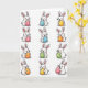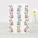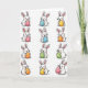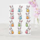 Designed with a neat grid of twelve long-eared rabbits, this illustration places them in four rows and three columns on a bright white background 🐇. Each rabbit is drawn in a simple cartoon style with soft white fur, rosy cheeks, tiny dot eyes, and fine whiskers, and their close, cheerful expressions feel like shared inside jokes between friends. Even lighting keeps every face and detail easy to see, giving the layout an airy, open look. In their paws, each rabbit gently cradles a decorated egg as if offering it to someone just outside the frame, adding a quiet note of affection. The eggs bring in a mix of pink, blue, yellow, orange, and green, with patterns like polka dots and stripes that vary from rabbit to rabbit 🌷. There’s no headline across the top or bottom; the only “message” is carried through the repeated poses and the colorful eggs. The final row includes eggs with alternating stripes and dots, set against the same white space surrounding the rabbits.