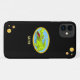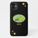 Happy crocodile & golden confetti on black iPhone 11 Case. Text can be personalized.