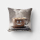 Smiling coffee cup with smile face, coffee beans, and white steam