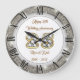 Great price for a very nice product. Arrived a day early - unheard of these days. The outside gold area has a little more orange tone to it than shown in the picture. Great packing so product can't get damaged. I used the same packing to forward the clock to my brother and sister-on-law for the 50th wedding anniversary. Printing was just as expected - lovely!