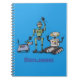 Happy cute robots trio cartoon on blue background. Robots are cool!