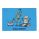 Happy cute robots trio cartoon on blue background. Robots are cool!