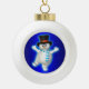 Happy Dancing Snowman on Blue Ceramic Ball Christmas Ornament