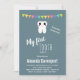 My first tooth party invitation with a drawing of a big white tooth with a cute kawaii smile and big happy eyes.