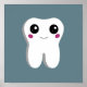 Poster with a drawing of a big white tooth with a cute kawaii smile and big happy eyes.