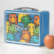 This personalized, playful, bold dinosaur faces kids' lunch box features a cheerful crowd of colorful prehistoric friends that is packed with personality.