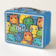 Happy Dinosaur Faces Crowded Pattern Metal Lunch Box