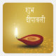Shubh Diwali Illustration: red diya (a cup-shaped indian oil lamp) with an indian ornamental mandala and the greeting written in Sanskrit.