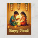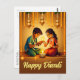 Happy Diwali greetings card Indian boy and a girl lighting lamps, Diwali greetings postcard