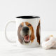 This cheerful mug features the smiling face of Peaches the hound dog.