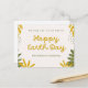 This vibrant Earth Day postcard is designed to celebrate our planet with an upbeat and positive message. The front of the card features a crisp white background, which provides a clean canvas for the lively elements of the design. Centered on the card is the phrase "Happy Earth Day" written in a flowing, cursive script that exudes a sense of joy and celebration. The letters are colored in a rich golden hue, which stands out boldly against the white backdrop.