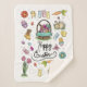 A colorful Easter and Spring design featuring cute bunnies, baby chicks, flowers, eggs, and candy!