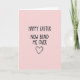 This card features a soft, monochromatic blush-pink background that keeps the focus on the central wording. Near the upper center, the text “HAPPY EASTER” appears in thick, dark charcoal lettering with slightly uneven edges, giving it a casual, intimate look 🐰. Just below it, the phrase “NOW BEND ME OVER” is set in the same dark tone and weight, creating a cheeky contrast with the gentle color field. The spacing between the two lines feels close and intentional, like a private note shared between flirty partners or close friends who tease each other. Centered beneath the text sits a stylized heart, outlined first in a deep shade that matches the lettering, then traced again inside with a thinner rose line for a layered effect 🌷. The heart’s double outline reads like two figures leaning in, suggesting closeness without adding extra imagery. Everything is arranged in a simple vertical stack on the pink background, with the dark text and layered heart standing out sharply against the pale field. The heart is positioned below the lower line of text, centered, with the inner rose outline tucked neatly inside the darker border.