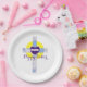 This elegant paper plate features a cross made of a cloudy sky photo along with a royal purple heart with the word RISEN. It's a nice plate for Easter and other spiritual occasions.