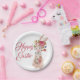 Watercolor floral Happy Easter brunch party plates feature adorable watercolor woodland Easter bunny.