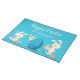 Brighten up your Easter decorating with this Happy Easter place mat that's ready to be personalized with your name and features a cute illustration of three bunnies with painted Easter eggs set against a bright turquoise blue background.