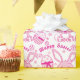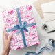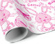 Fun bright pink Easter patterned graphic wrapping gift paper. Cute bunny rabbits, Easter eggs, flowers, and the greeting Happy Easter wrapping gift paper in shades of pink and white. Great for Easter gifts for girls or women. Customize with your own background color if required currently white. Unique graphic art and pattern design by Sarah Trett.