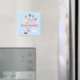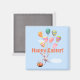 Magnet with my design of a cute little rabbit floating up into the sky holding onto a bunch of balloons and carrying a basketful of Easter eggs. Text says "Happy Easter!"