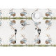Set a festive stage for your holiday feast with this charming Easter tablecloth featuring a whimsical repeating pattern of a fluffy white bunny. The design showcases the bunny in a blue checkered sweater, strolling through soft green grass while carrying a basket overflowing with pastel-colored eggs. This bright and airy illustration is mirrored across a clean white background, making it an ideal choice for hosting Easter brunch, spring tea parties, or any seasonal family celebration.