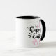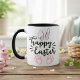 This two-toned mug features pink bunny ears and bunny feet with the words "Happy Easter" in a black decorative script.