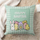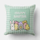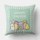 Happy Easter Bunny Chick Eggs Green Gingham Throw Pillow