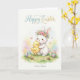 Send the sweetest Easter wishes with this adorable bunny and chick hugging scene! A fluffy white bunny wearing a beautiful flower crown gently hugs a tiny yellow chick with a cute pink bow tie. Colorful decorated Easter eggs, two sweet snails, floating hearts, and a soft rainbow watercolor background create a magical spring meadow. Beautiful watercolor style, blank inside with editable message. Perfect for Easter, spring, or any animal lover!