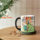 Beautiful colorful collage MUG with an Easter bunny at the front. This cute, whimsical, cool collage design has orange, blue, green, and salmon-pink colors with a cute Easter bunny holding a chicken at the front. It has the Happy Easter greeting on the front and also a custom name at the back; both can be easily replaced with yours. It great design for the Easter holiday you can add it to your dining room or kitchen decoration or use it as a gift for someone special. Check the collection for coordinating items.