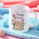 This adorable Happy Easter mug features a cute bunny illustration with spring flowers and grass.