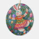 Happy Easter! A happy Easter Bunny danced with flowers and decorated eggs.