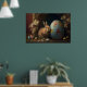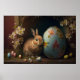 This Easter poster features a colorful and playful illustration of a cute bunny surrounded Easter eggs. The realistic colors make this poster the perfect way to add some festive cheer to your home or office this Easter season.
