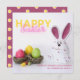 A cute bunny figurine with a couple of colored eggs is the backdrop of this Easter Holiday Greeting Card. We've added a polka dot pattern to the back of the card, but feel free to change it if it's not to your liking. Add your name to the front of the card and you're all set. You can also change the personal message or leave it as it is.