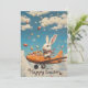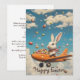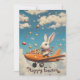 Take flight this spring with a whimsical Easter invitation featuring a fluffy white bunny piloting a bright orange vintage airplane. The sky is filled with a colorful flurry of decorated Easter eggs falling like confetti through soft, dreamy clouds. The reverse side provides a clean, organized layout for all your event details, including date, time, location, and RSVP information. This playful and adventurous design is perfect for hosting a neighborhood egg hunt, a school spring party, or a joyful family brunch.