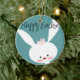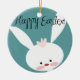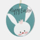 Happy Easter bunny rabbit on blue teal background Ceramic Ornament