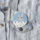 This adorable Easter button pin will be so much fun to wear all through the Spring and Easter. The top half is blue with white polka dots and has a precious bunny rabbit peaking over the top of a banner that says Happy Easter. Below the banner is a pattern of Easter bunnies and flowers. Happy Easter is customizable so you can change that if you like to say Happy Spring or your daughter's name, or anything else.