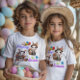 A Colorful Happy Easter Kids Tee Shirt Designed With Two Bunnies With Basket Of Easter Eggs