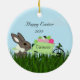 Happy Easter Bunny w Wheelbarrow of Eggs Ceramic Ornament