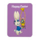 Cute bunny carrying a big basket full of colored eggs with a chick sitting on top of the basket, is featured on this holiday magnet. With the Happy Easter message, this would make a great decoration or give as a gift for Easter time!