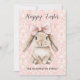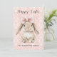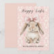 Happy Easter Bunny with Bow on Pink Damask Holiday Card